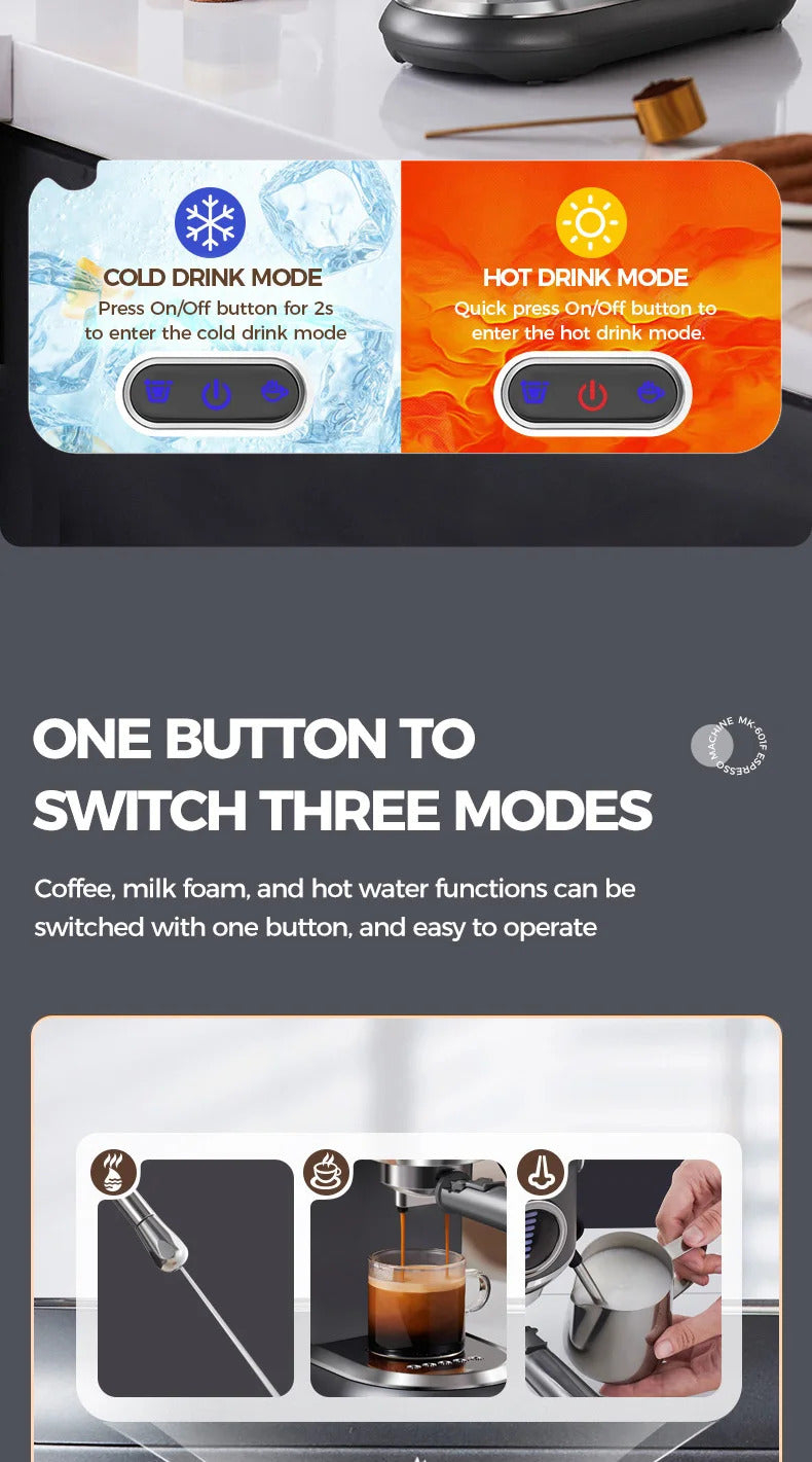 ★【Low Pressure Pre-Soaking Function】 Water fully soaks the coffee powder at low pressure, and then extract at high-pressure, so as to extract more fully and avoid the formation of channel effect.
