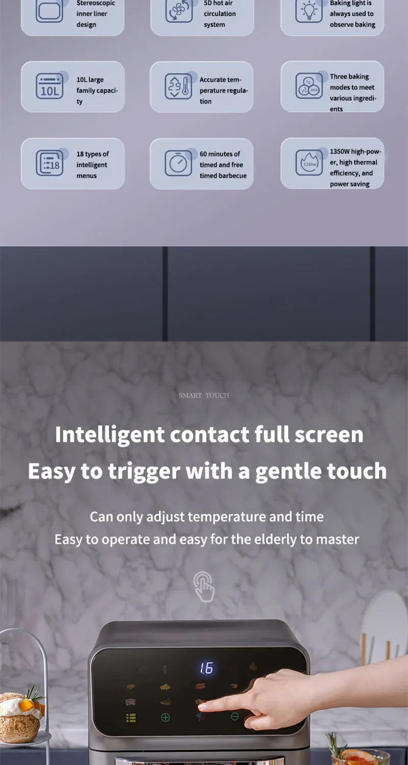 10LLarge Capacity Electric Air Fryer | Oil-Free & Automatic Household Kitchen Convection Oven | 360° Baking & Deep Fryer | Healthy Cooking Without Oil