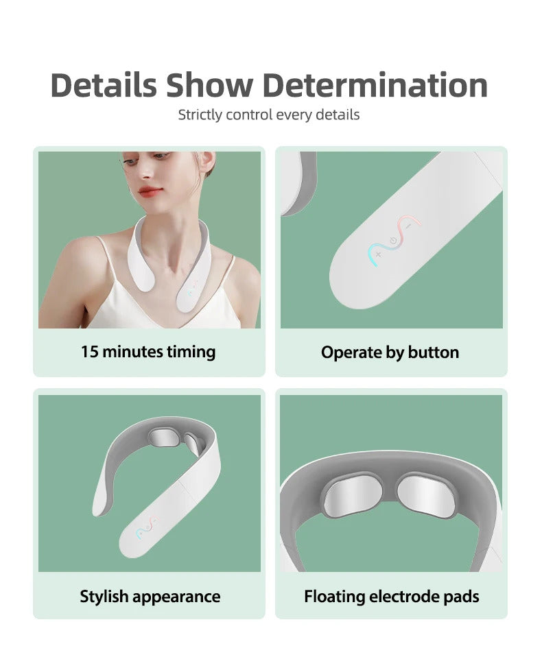 0~1000Hz low-frequency pulse micro-current, directly stimulate the neck muscles, through the contraction and relaxation of the muscles, play a role in relieving pain. The floating electrode piece fits all kinds of neck curves, and the massage effect is better.