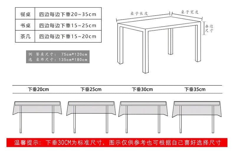 Size Guide: Before purchasing the tablecloth, please carefully measure the size of the table and choose the tablecloth that suits you. If you have any size and quality issues, please feel free to contact us. We promise to help you solve the problem within 24 hours