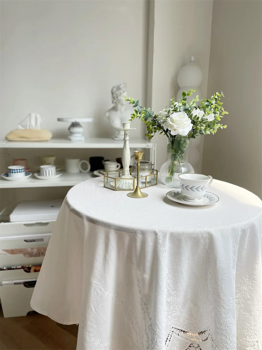 Embroidery 100% Cotton Lace White Flower Tablecloth for Home Wedding Party Decoration Table Cloth Luxurious Table Cover
