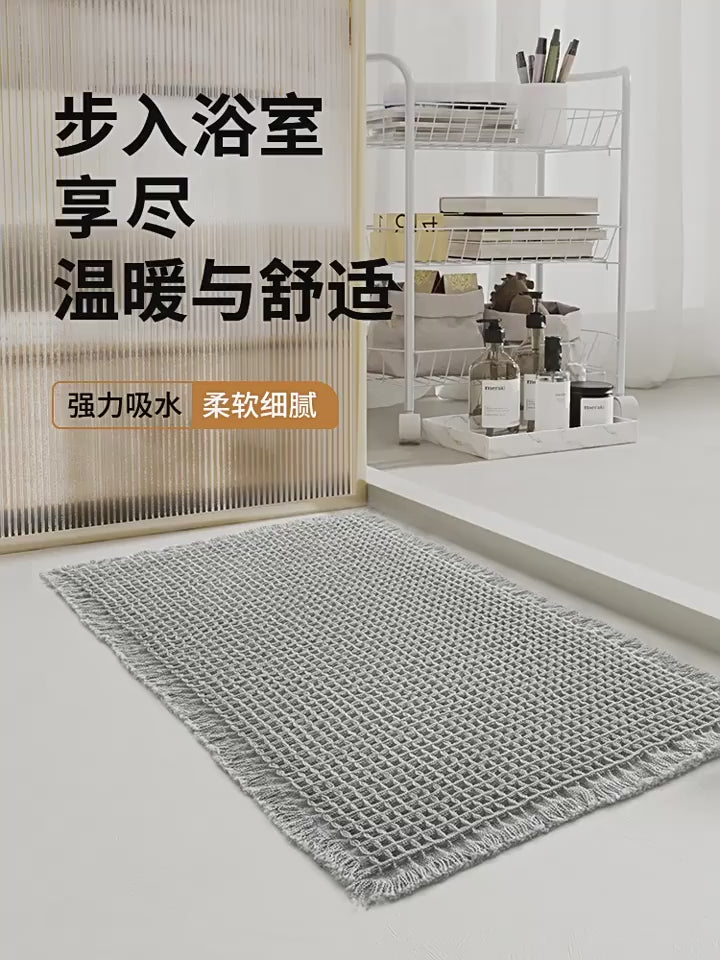 Polyester-cotton Waffle Bath Mat Bathroom Door Mat Anti-slip Foot Mats Water-absorbent, Quick-drying Floor Towel Anti-slip Rug