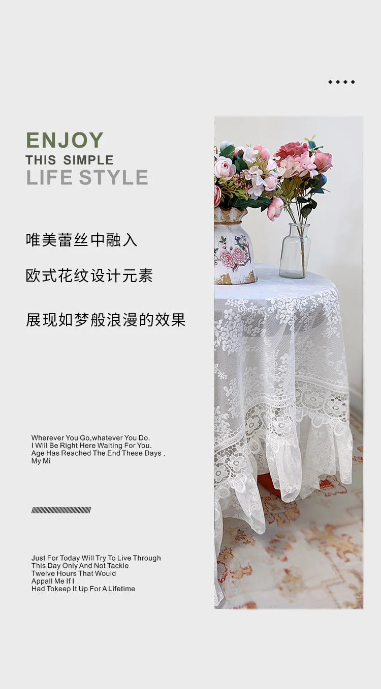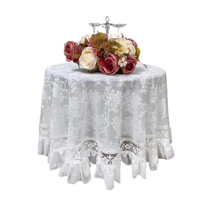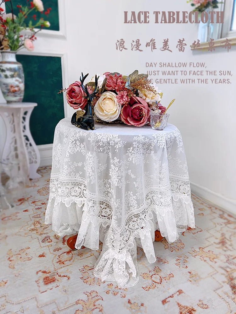 Round White Lace Table Cloth Yarn Dining Table Cover Romantic French Embroidered Tablecloth Tea Table Juppe Wedding Decoration